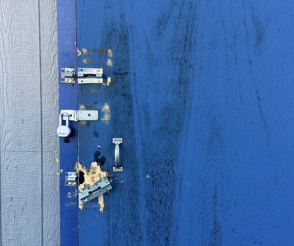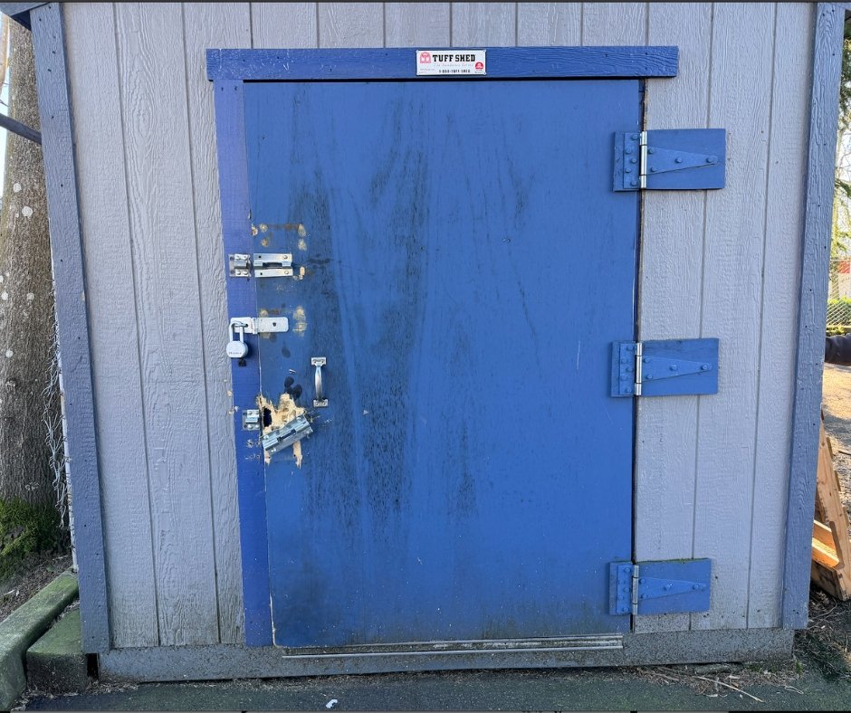 - Repaired and reinforced exterior storage door