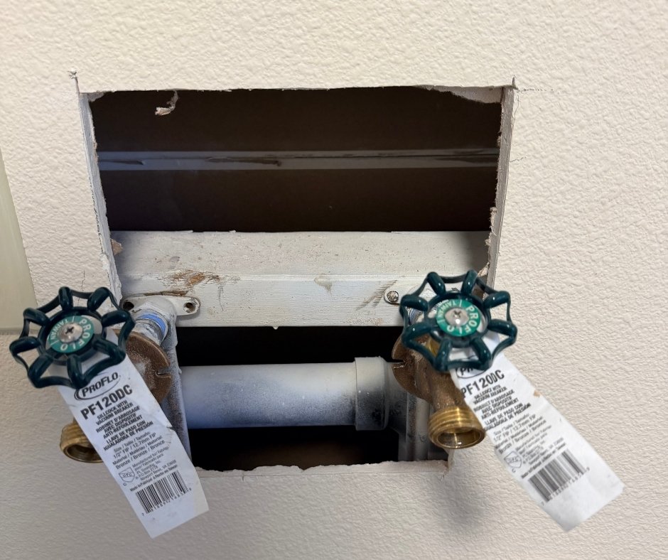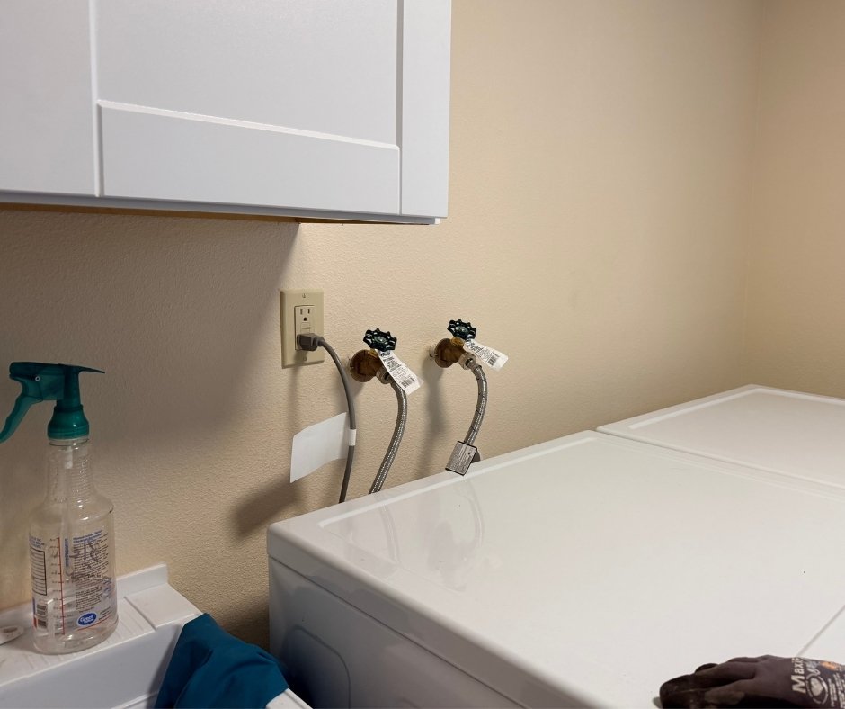 We started by evaluating the existing washing machine hookups, which were positioned too low and left exposed. Our goal was to modernize this setup and create a cleaner, safer connection point.