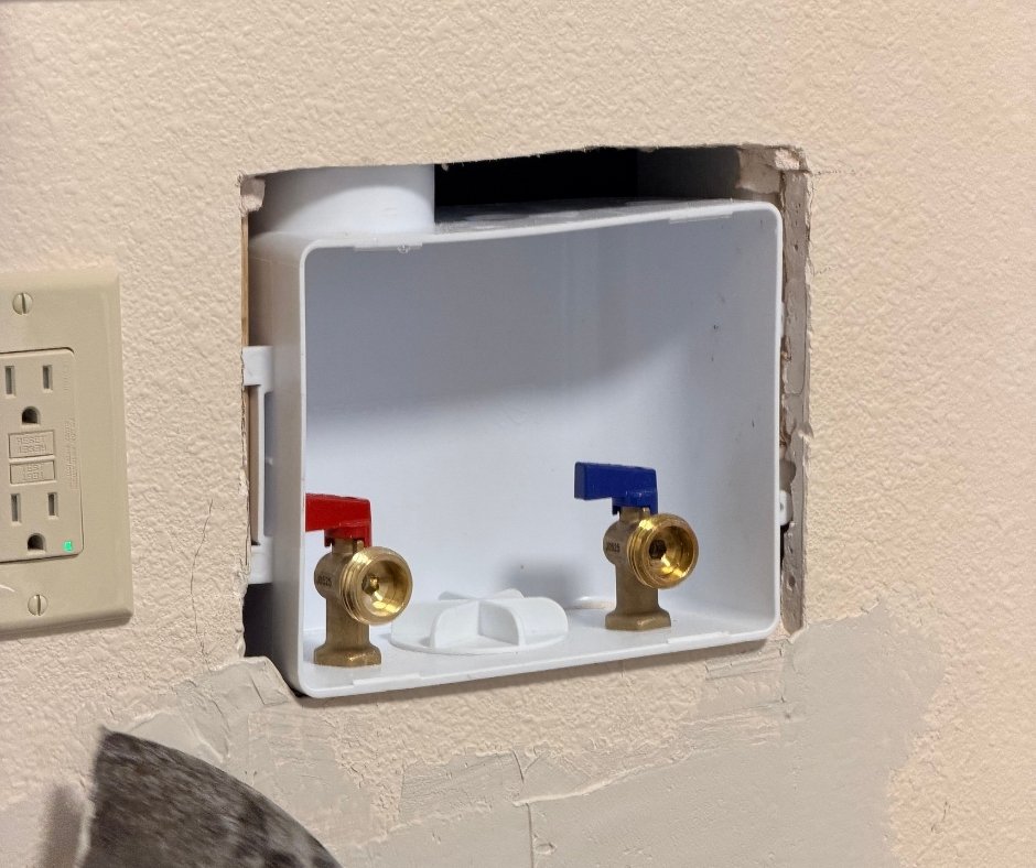 - Installed a modern recessed laundry box (hot/cold + drain)