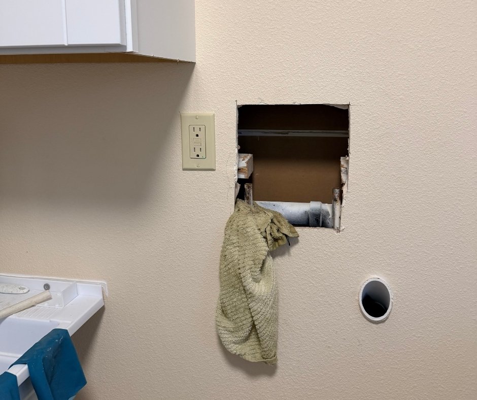 We marked the area and used a multi-tool to cut the drywall for clean access. This opening was planned so it could be patched later and restored to a clean finish.